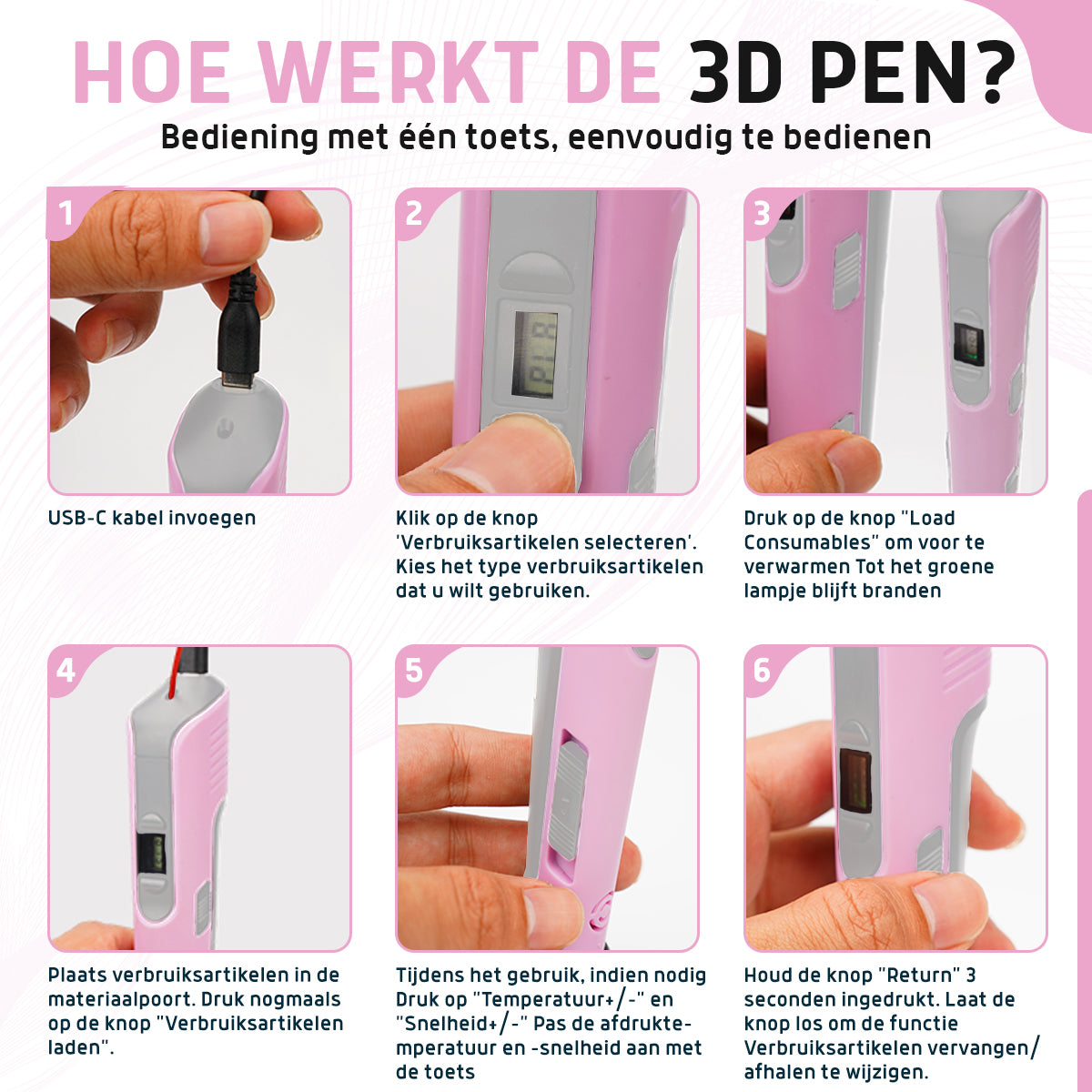 Go for a 100% optimal 3D pen experience with this craft package from Fleau. With no less than 150 meters of refills in 30 different colors, you will have almost endless fun with the 3D starter set! The character set is suitable for children and adults. The 3D pen and refills also come with a charger, a manual and a booklet with examples. the 3D pen is made with an eye for ergonomic design. This makes the pen very comfortable to hold. In short, the ultimate package to get started with the 3D pen experience!